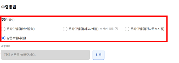 5.수령 방법 선택 (본인 출력, 전자문서지갑 등)