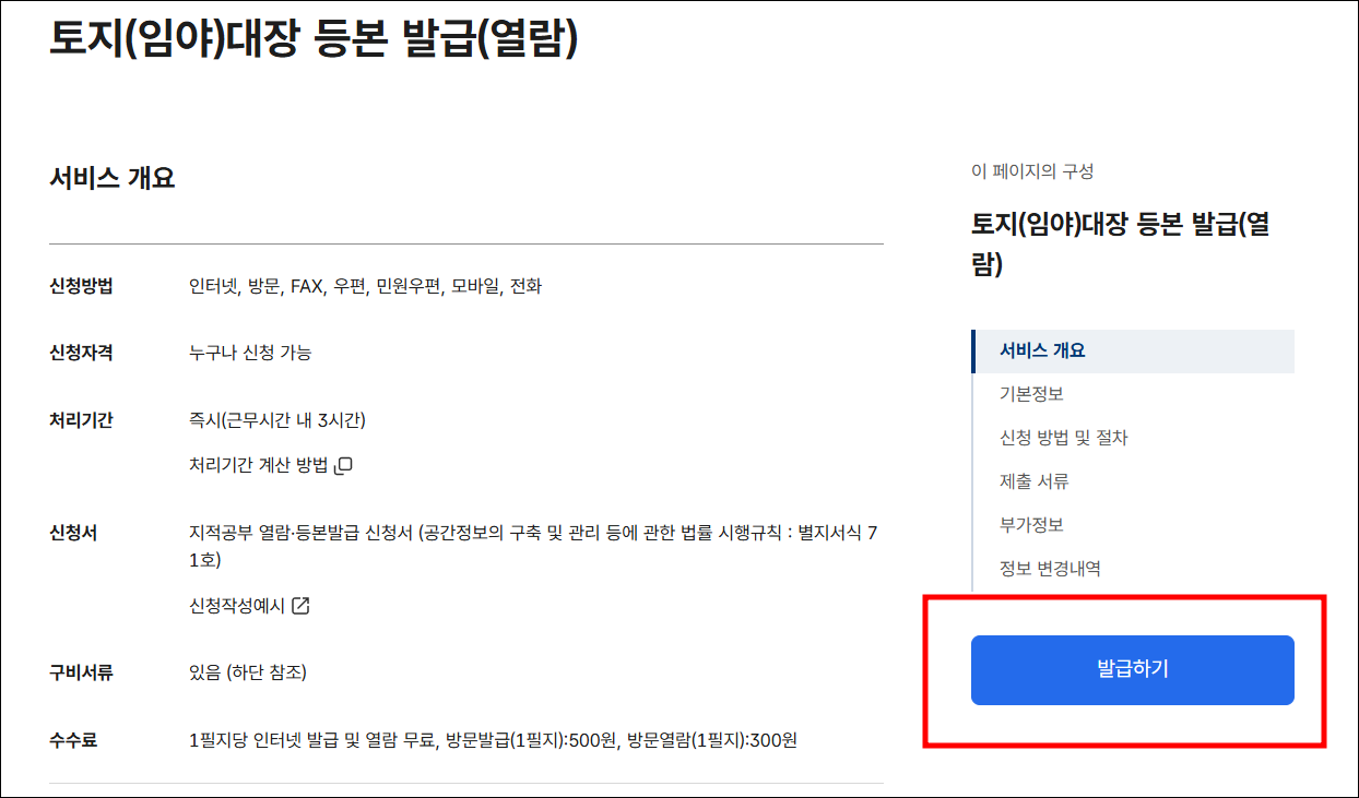 | 발급방법 | 정부24, 토지이음 또는 주민센터 방문 |